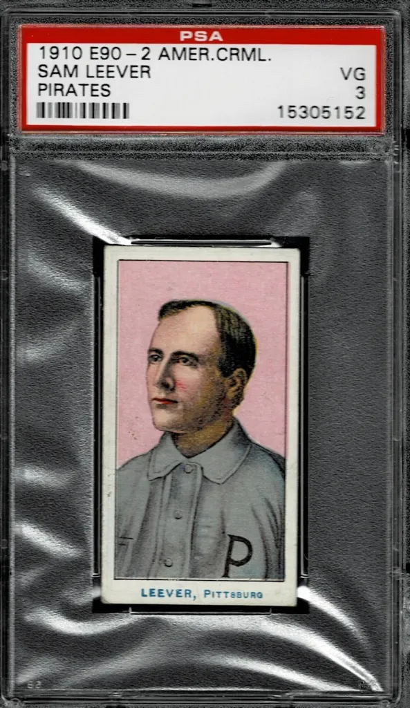 The E90-2 American Caramel Cards Pirates Team were produced in 1910 by the American Caramel Company in Philadelphia, PA. Similarly to to other series; each card is cut at a size of 1 1/2 x 2 3/4 and have a color lithograph with backgrounds of either pink, blue, green or red. The cards show the players name and “Pittsburgh” that are located in the white border area of the bottom of the card.
