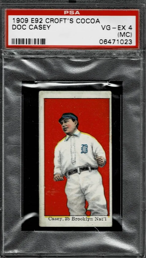The E92 Caramel Cards Croft’s Cocoa series is one of the 4 subsets and has a total of 50 cards. Interesting, there are 2 different backs for the cocoa cards. There is the regular black and white back, however, there is a red backed version that is rarer.